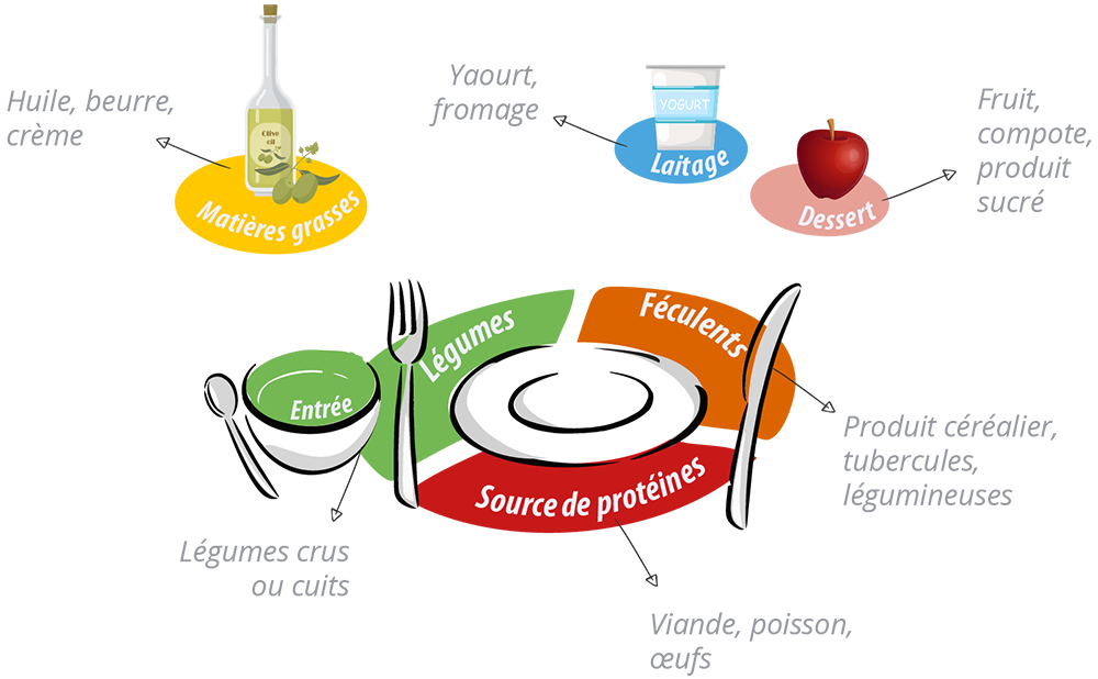Un repas équilibré repose sur 5 + 1 composants essentiels :